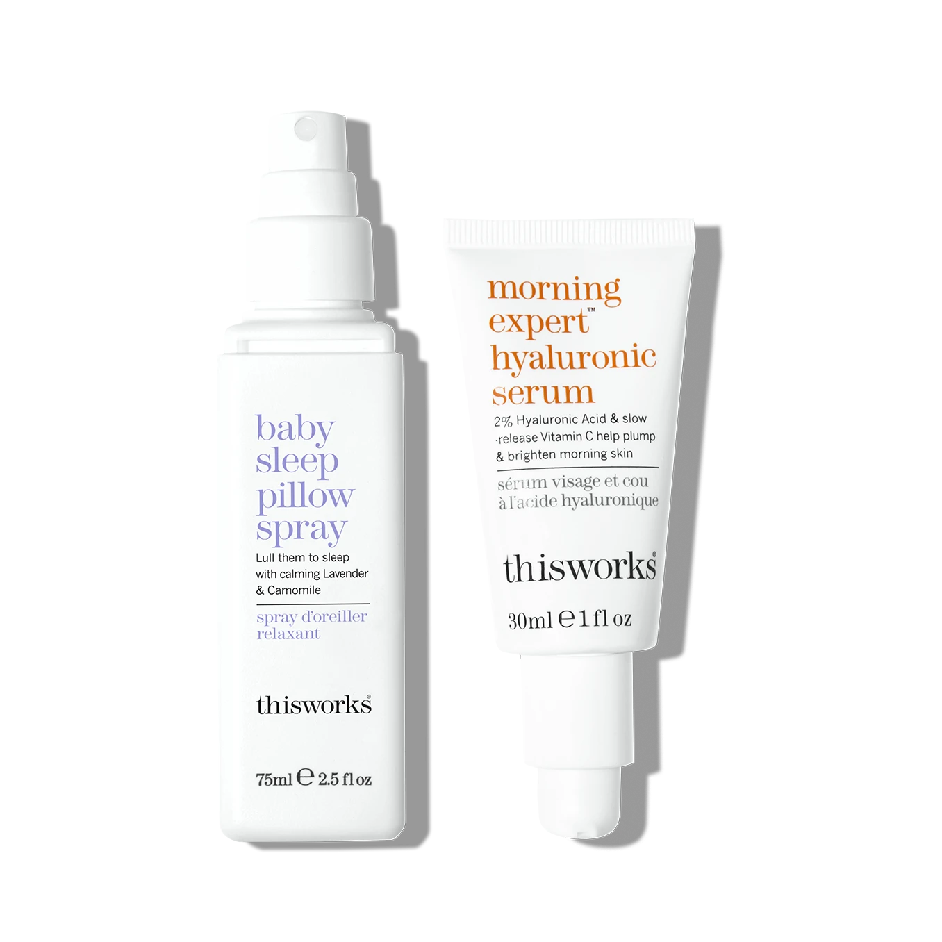 Get up and glow with this mother & baby duo to help soothe your child to sleep and hydrate your skin first thing.