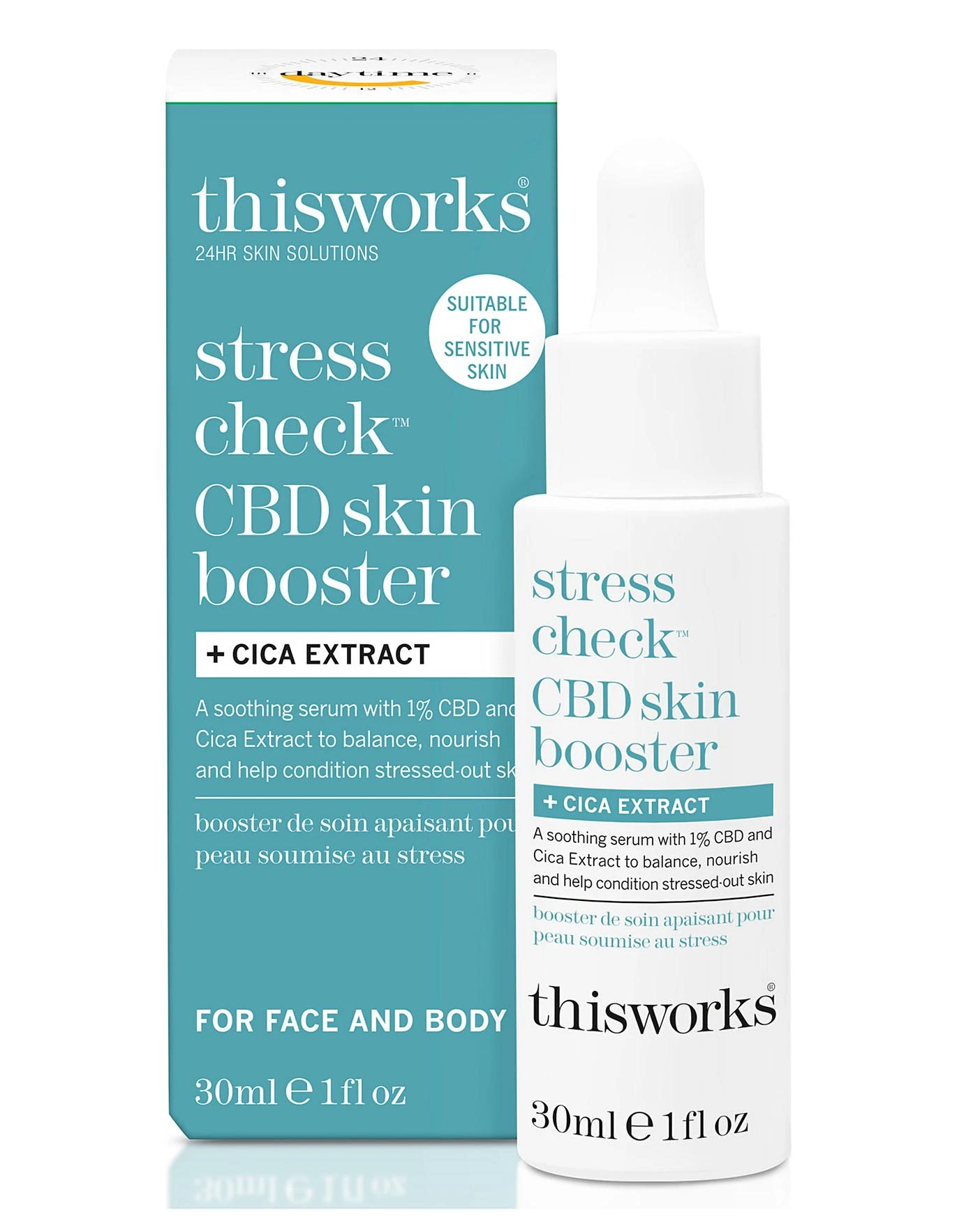 A calming daytime serum to strengthen skin’s resilience under stress with the help of 1% CBD, Squalane and Cica extract to hydrate, balance and nourish sensitive skin.